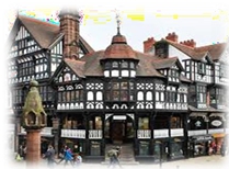 Popular for its rowed black and white buildings, medieval two-tier architecture with covered walkways which today house many of Chester's shopping haunts, eateries & art galleries.